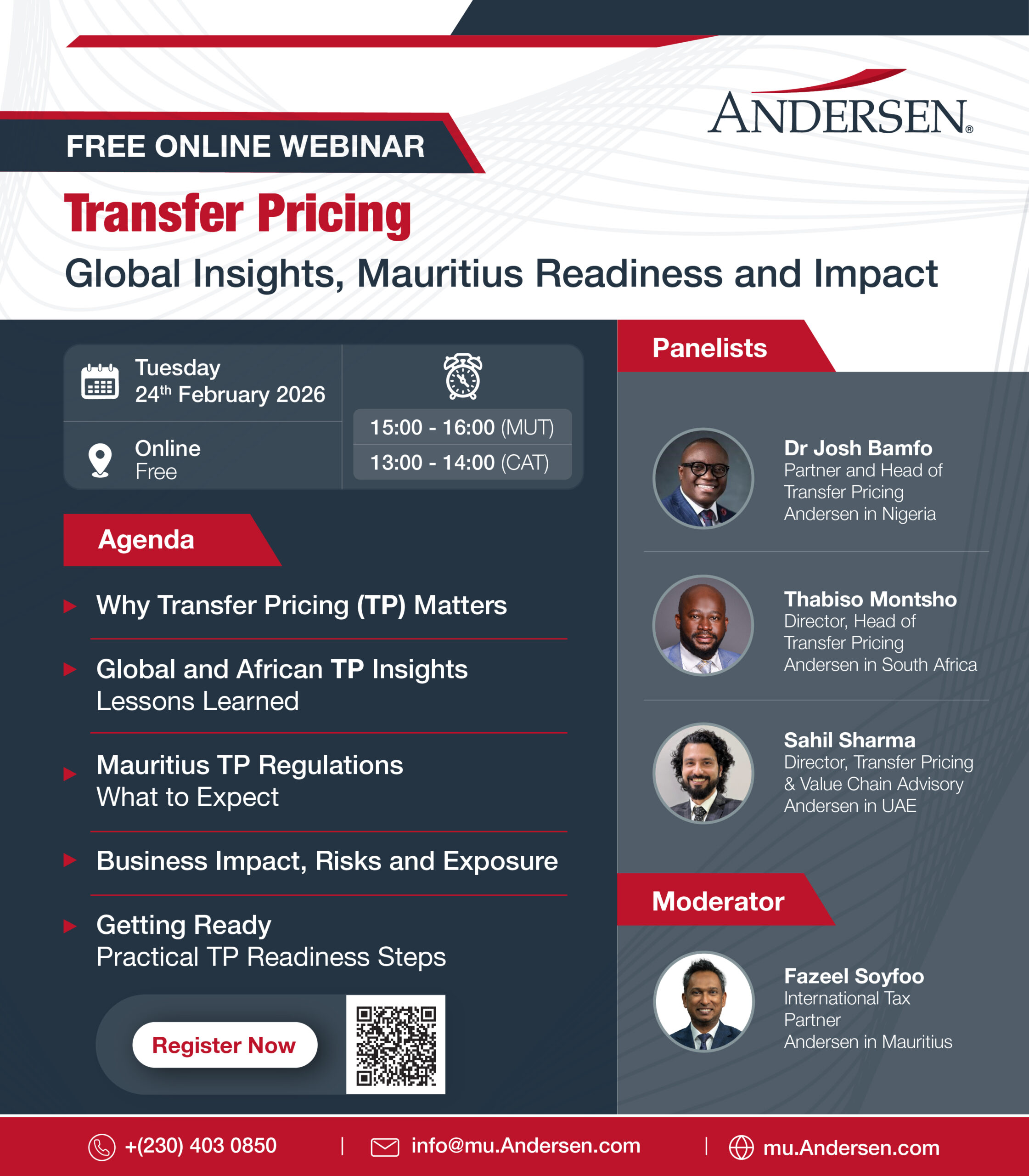 Featuring TP specialists (Josh Bamfo, Thabiso Montsho & Sahil Sharma) from Andersen across Nigeria, South Africa & UAE, moderated by Fazeel Soyfoo, Partner at Andersen in Mauritius.